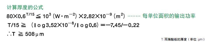 对于 1 类 AEL,丙烯酸板的理论厚度(典型示例)