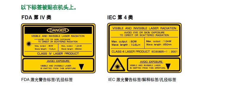 以下是用于 ML-Z 系列 CO2 激光刻印机的一个警告标签示例。