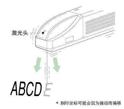 激光刻印机使用精确的光学控制。由于这个原因,如果在刻印时发生振动:
