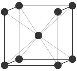 常温铁的形状是原子位于立方体各顶点和中心处的“体心立方晶格”。