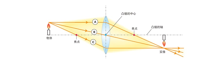 当镜头为凸镜时,焦点距离将根据镜头的厚度(膨胀)程度不同而各不相同,膨胀程度越大焦点距离越短。