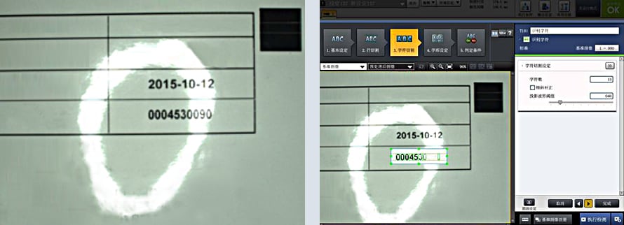 但但是通过去除反光的功能,原本看似不可能的OCR检测马上轻松搞定(观察文字切割的清晰波形图)。