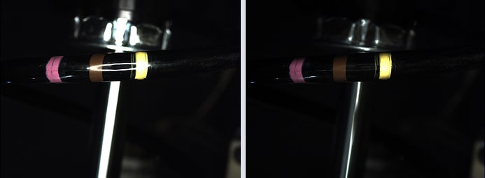 下图颜色检测也是,因为反光的原因,颜色饱和度很差,而消除反光后,颜色变得清晰易于识别。