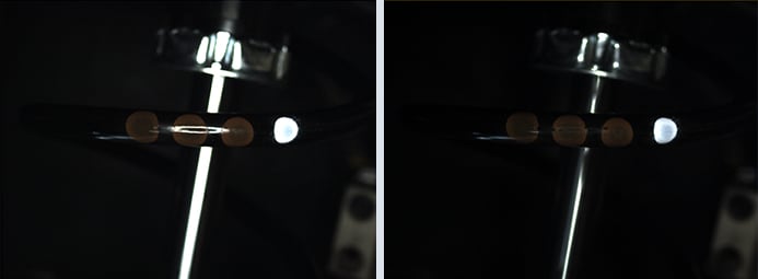 下图是麦弗逊结构悬架的部件之一,弹簧。该案例是通过检测色标的颜色和个数来区别弹簧类型。图中的弹簧有反光。