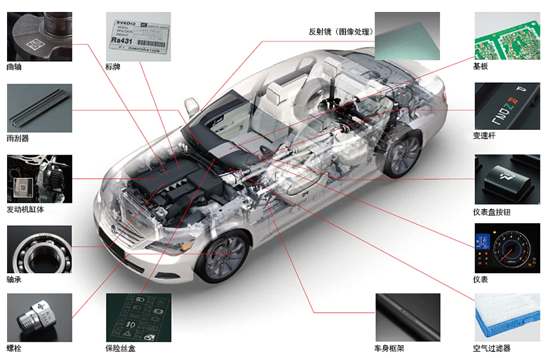 在“安全”高于一切的汽车行业,高水准的记录管理、工序管理是一贯的要求。尤其是通过刻印二维码确立可追溯性,受到众多汽车生产商、零部件供应商的重视。这种“刻印的必要性”已不仅体现在主要零部件,而且逐步扩展到多达2 万件以上汽车零部件。其中,使用“激光刻印机”的直接金属零部件刻印技术以其不会消失、无法涂改、运行成本低的优点脱颖而出。本书将对使用激光刻印机刻印的应用案例进行介绍说明。