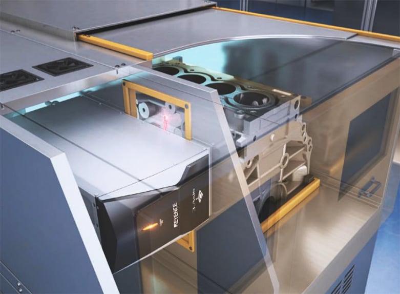 在发动机缸体等大型铸造零部件上刻印时,很难配合激光刻印机的焦点距离来搬送工件,有时会发生由于焦点偏移而产生的刻印不良。