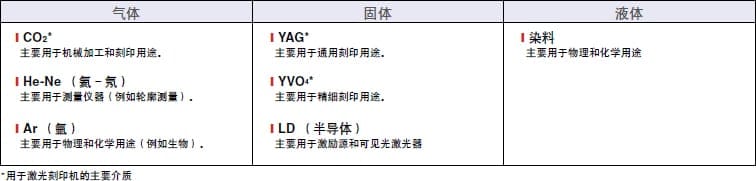 以下图表根据应用中的典型用途简要描述了不同种类的激光刻印机。