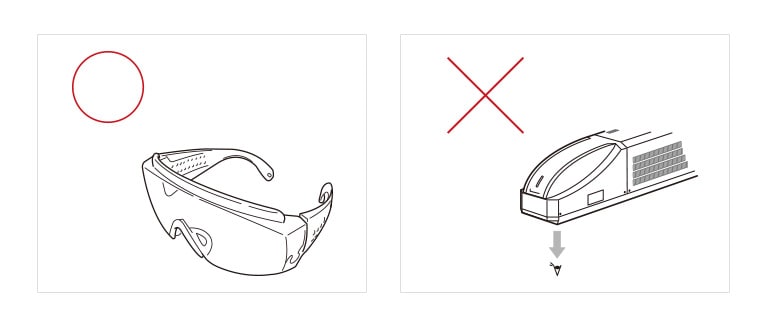 切勿直视激光,被镜面反射的激光或漫反射的激光。