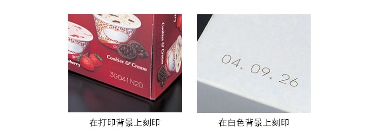用激光刻印预先打印好的盒子时,创建一个统一的打印背景,增加了打印的可见度。在白色背景上打印时,激光刻印机能打印出烙印图案。
