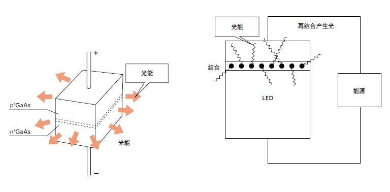 该结构非常类似于二极管。区别是用 GaAs 做主体,能量在它身上表现为光而非热量,从而把二极管变成了 LED(发光二极管)。