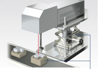 被放大的激光束把光聚集在目标表面。利用被称为扫描镜的镜子来扫描这个聚集点,激光就能在一次通过后创建打印图像。部分机型使用二轴控制,有一个X轴扫描器和一个Y轴扫描器,只能在平面上进行刻印。KEYENCE 全新的机型还有Z轴扫描器,能进行高度控制。它们能在各种 3 维形状上清晰地刻印。