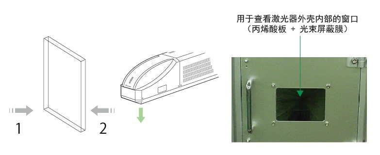 为确保有效地集尘以及避免激光反射,请用激光不能穿透的材料覆盖激光的通道。此外,要封闭激光通道,使得激光束不会照射到没有目标存在的地方。