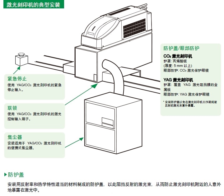 备注: NOHD 只应该用作安全管理指示。JIS 标准指明“在所有情况下,对激光辐射的接触量都必须降低至最小”。NOHD 值并“不”意味着只要操作员在 NOHD 距离之外,便可以在没有安全盖的情况下操作激光刻印机。