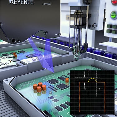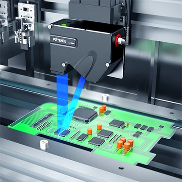 传统的测量方法是通过一维激光移位计扫描后进行测量。LJ-X系列采用线激光,无需移动感测头就能测量载体与印刷电路板的高度差。无需停止传送就能进行测量,从而大幅缩短检测时间。