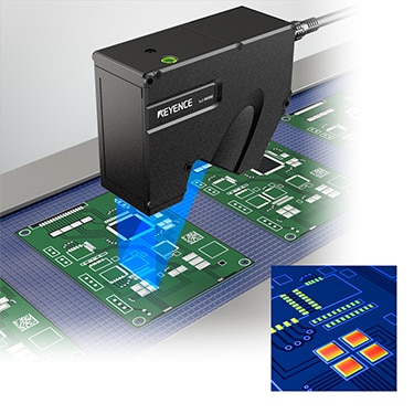 对焊接后的元件进行倾斜检测。CL-3000 系列采用可完成同轴测量的彩色共焦方式。不论目标物是镜面还是粗糙面,都可以相同的安装方法进行测量,实现简单且高精度的检测。