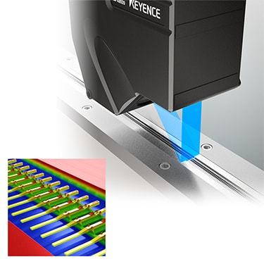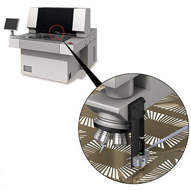 使用CL-3000测量与引线框之间的高度差。通过将测量结果反馈到图像检测装置,可高速控制自动对焦