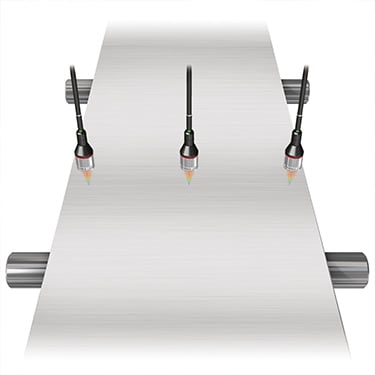 使用搭载ABLE功能的激光位移传感器,不受材质限制,即使红热金属也可以测量宽度和形状。 安装距离最高可达1米。