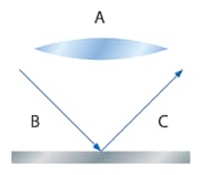 要观察高度反射的平面物体,如IC和横截面样本,采用环状照明是难以完成的。当光线接触表面时,镜头会反射大部分光线,进而形成暗像。与此相反,同轴落射(明视场)照明可观察这些目标物,并生成亮像。一般而言,这种照明需要使用单向透视玻璃,才能匹配照明和镜头的光轴。