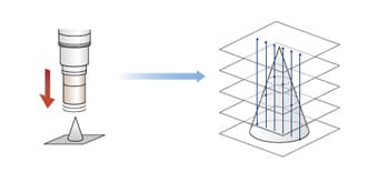 一些数码显微系统能够扫描整个表面,并捕捉完全对焦的每个不同部位,然后将它们合成为一幅全幅对焦图像。数码显微系统会利用每个焦平面的相对高度数据,将表面重建为可自由操作的3D图像,从而方便用户了解表面的真实形状。