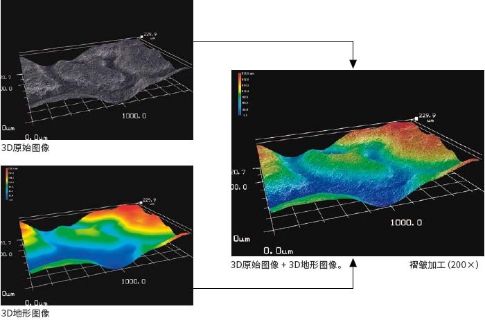 通过计算镜头在图像中的每个点准确对焦时的高度位置度,即可生成3D图像。
