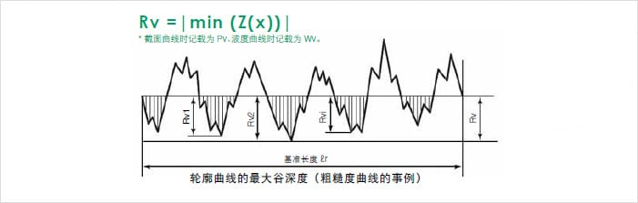 最大谷深度(maximum profile valley depth)(Rv、Pv、Wv)
