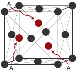 淬火后,铁的形状变为原子位于立方体各顶点和面中心处的“面心立方晶格”,碳能够溶解于此。