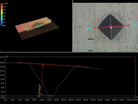 并测量留下的维氏压痕的对角线长度,来进行计算。