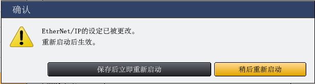 设定完成后,显示确认重新启动的对话框,选择〔保存后立即重新启动〕。