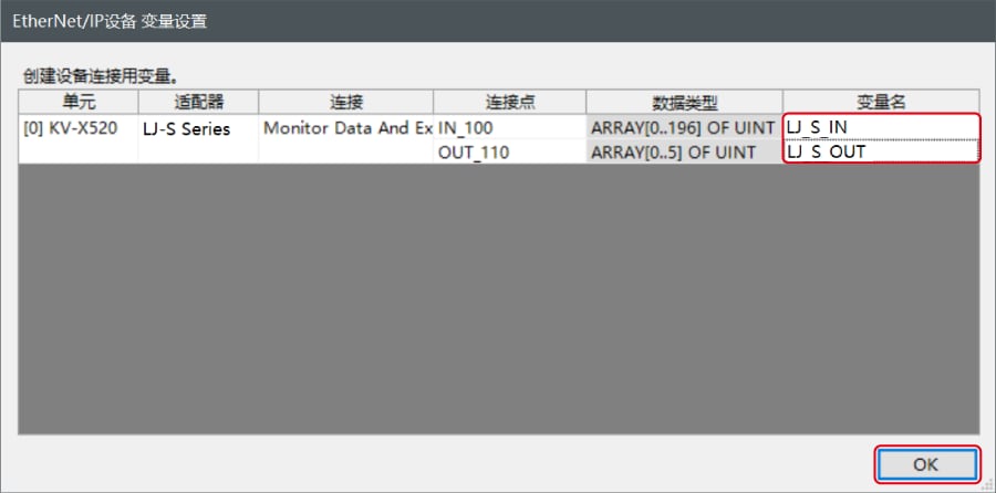 输入分配给连接的变量的变量名,单击〔OK〕。